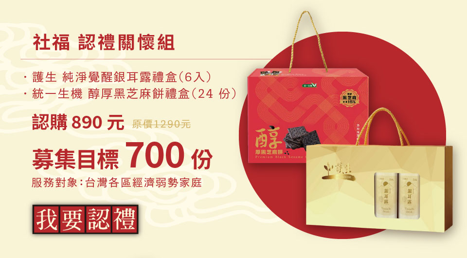 請注意!您不會收到商品喔!年節認禮預計於2026/1/22-2/11期間陸續配送,我們會將您的認禮交由僧伽林善緣慈善會與社福中心志工,以及1919食物銀行,把這份來自您的愛心,親自送到需要關懷的家庭手...