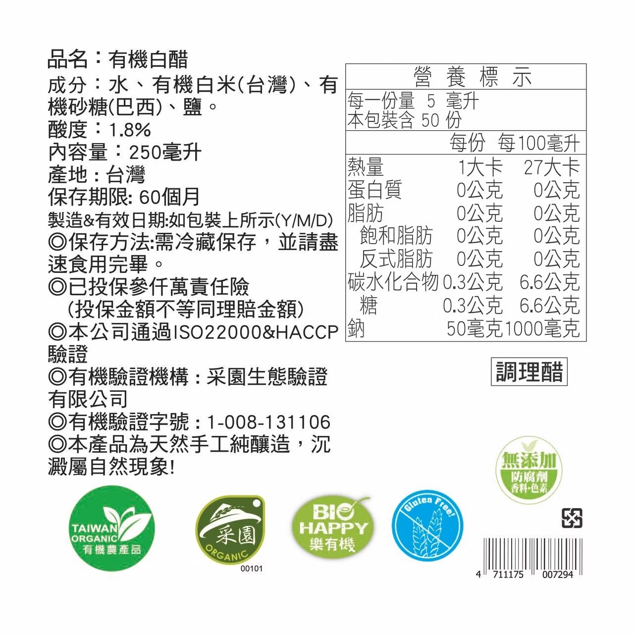 -  使用台灣有機米,100%純釀造