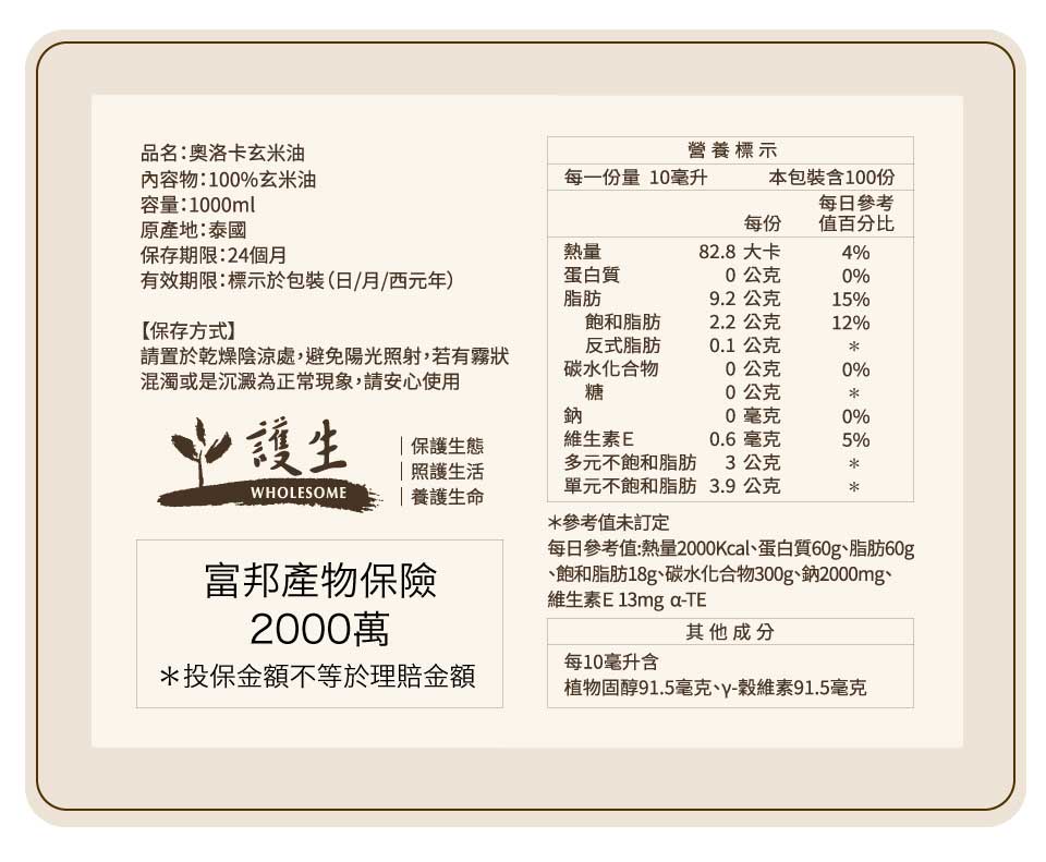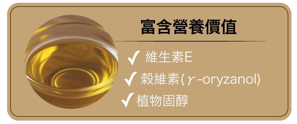 2.有保護力 — 玄米油中含有 維生素E、榖維素(γ-oryzanol) 等天然抗氧化成分,可以保護油脂不易氧化,延緩劣化。