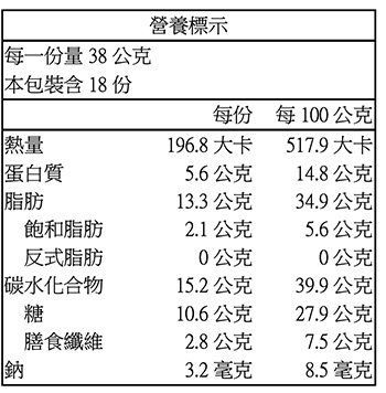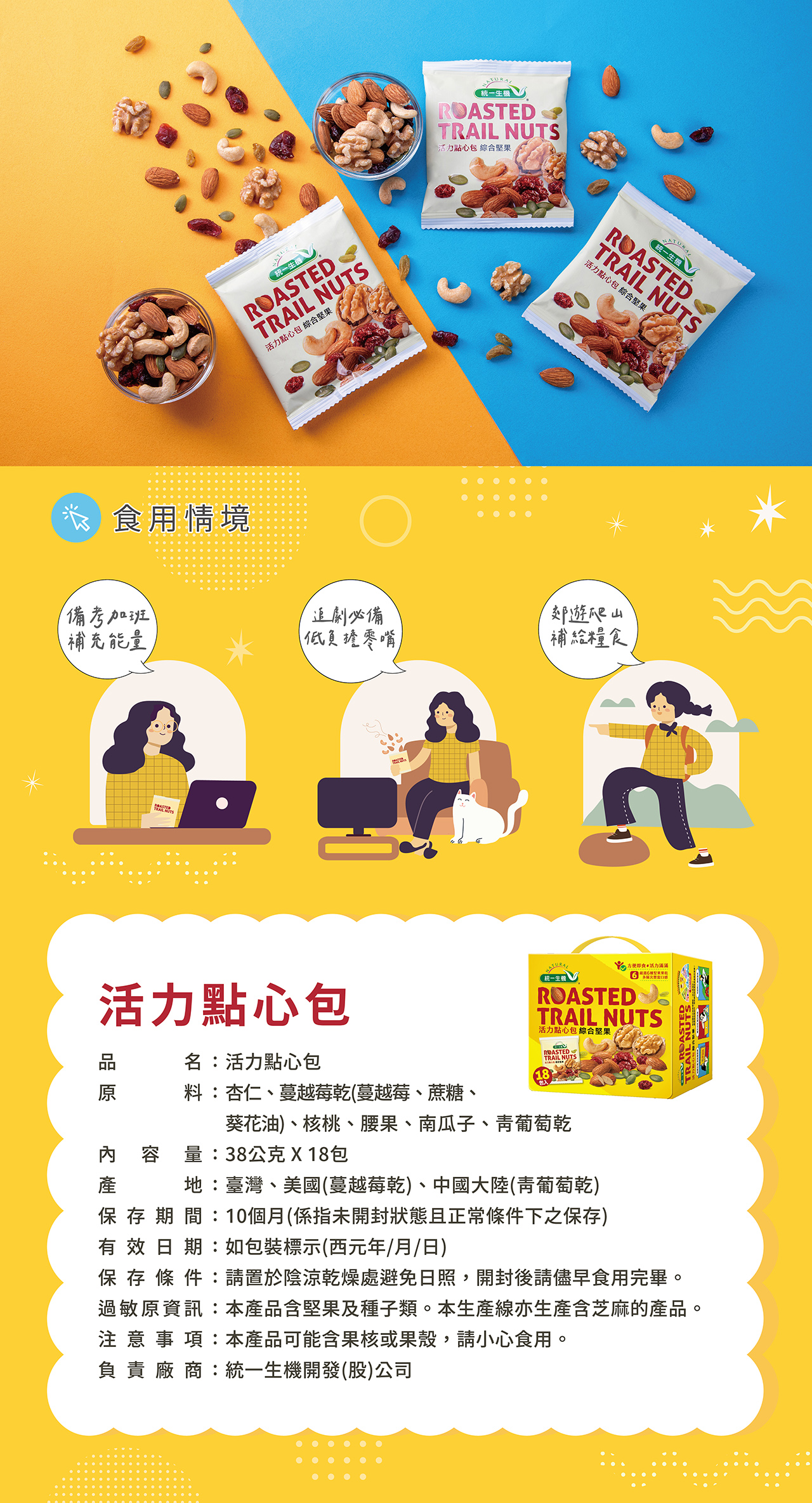 一包38克,滿滿營養與飽足感,不只適合當孩子放學的小點心,也是運動後的能量補給首選。無論早餐搭配、郊遊攜帶或家庭分享,都是健康活力維持的好選擇!