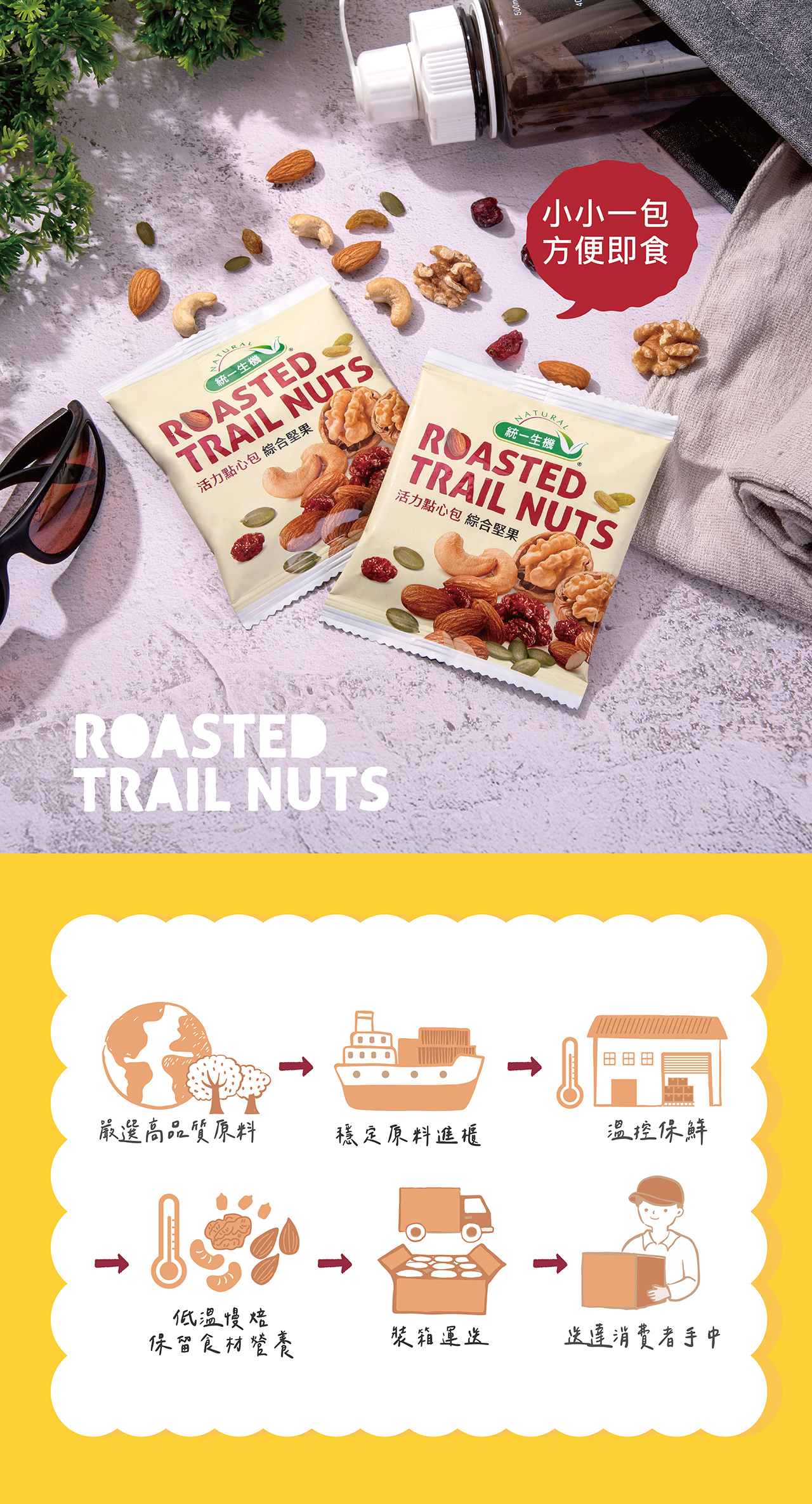 - 嚴選高品質原料,採低溫輕烘焙保留堅果香氣及營養