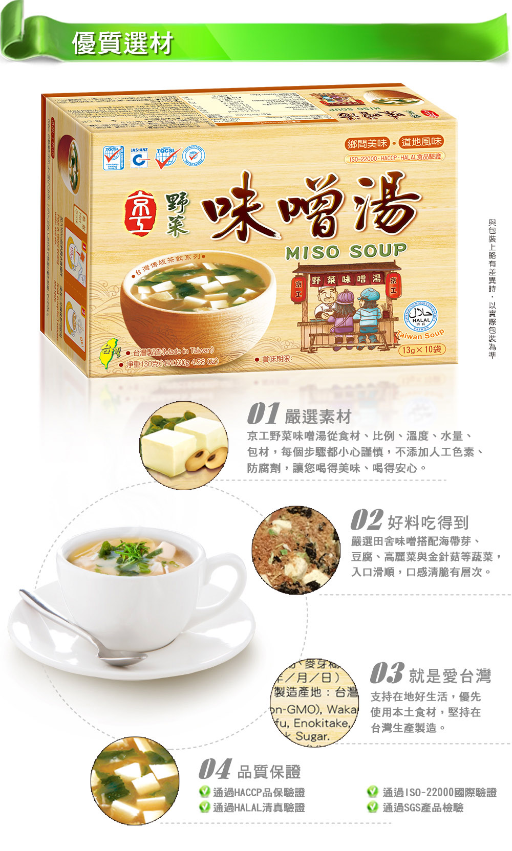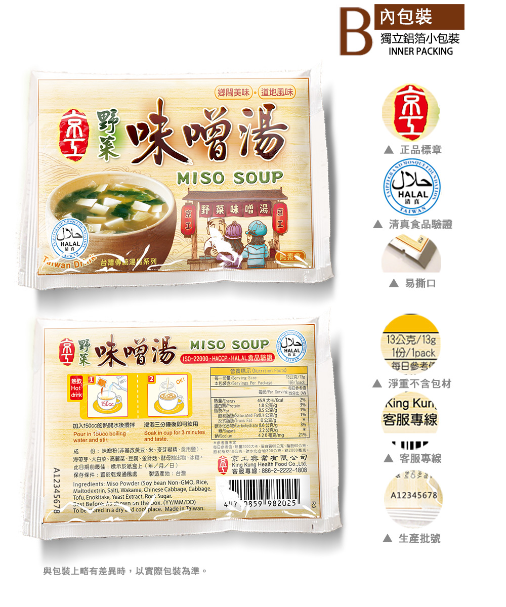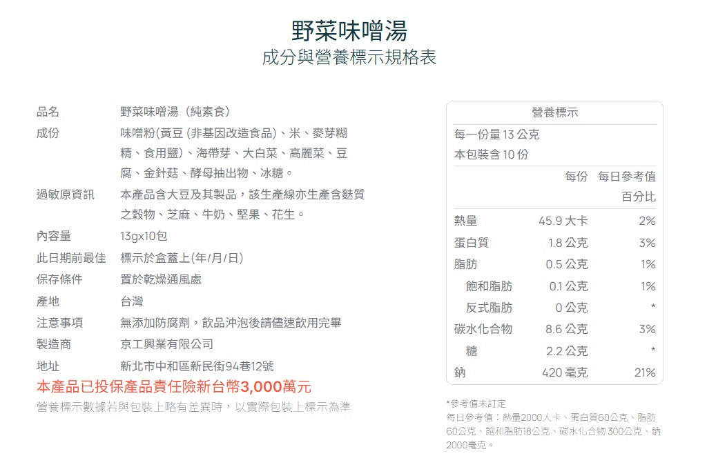 • 嚴選食材:嚴選日本田舍赤味噌搭配多種蔬菜