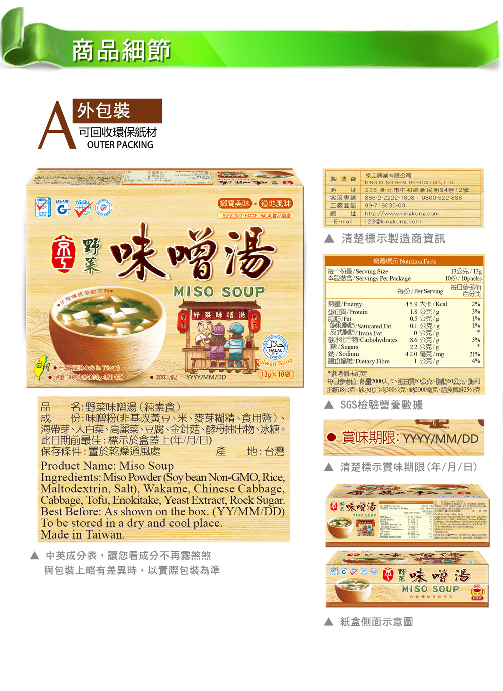 • 獨立包裝:積層內袋,隔絕細菌濕氣可常溫保存