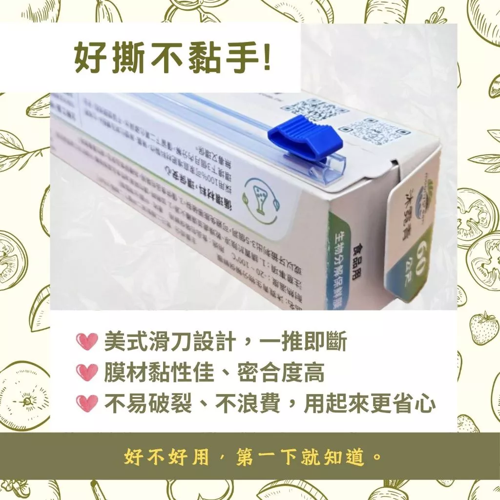 沐霓青環保生物可分解保鮮膜,非PVC無氯、無塑化劑、內建滑刀、一滑即切