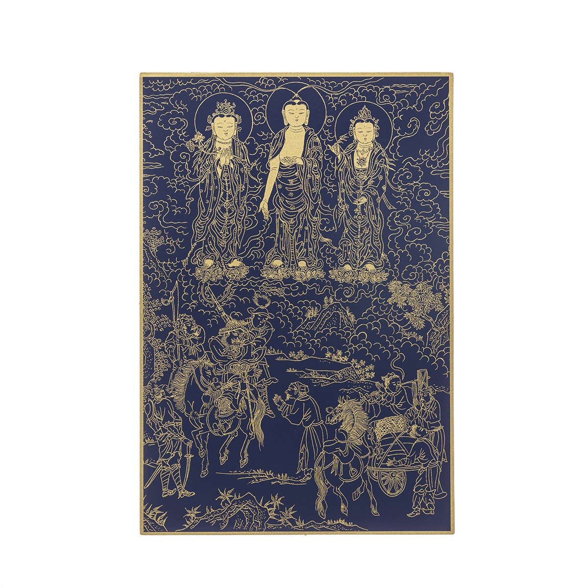 製作說明:進口藍紙,特製金墨,仿真網印。