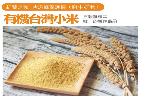 小米是原住民重要的糧食作物,可供作煮飯、煮粥、釀酒、糕餅、點心等,其莖、稈、穀可當餵養家畜的飼料。除此之外,小米含維生素B、維生素E、鈣與鐵,還有穀類中不常見的胡蘿蔔素;因為不含麩質,也適合作幼兒副食品、麩質過敏者適量食用。與進口小米相較,台灣原生種小米,不須浸泡即可直接加入穀類中烹煮成飯,或是水滾後小火煮10分鐘即成小米粥,質感香甜濃滑,非常順口!