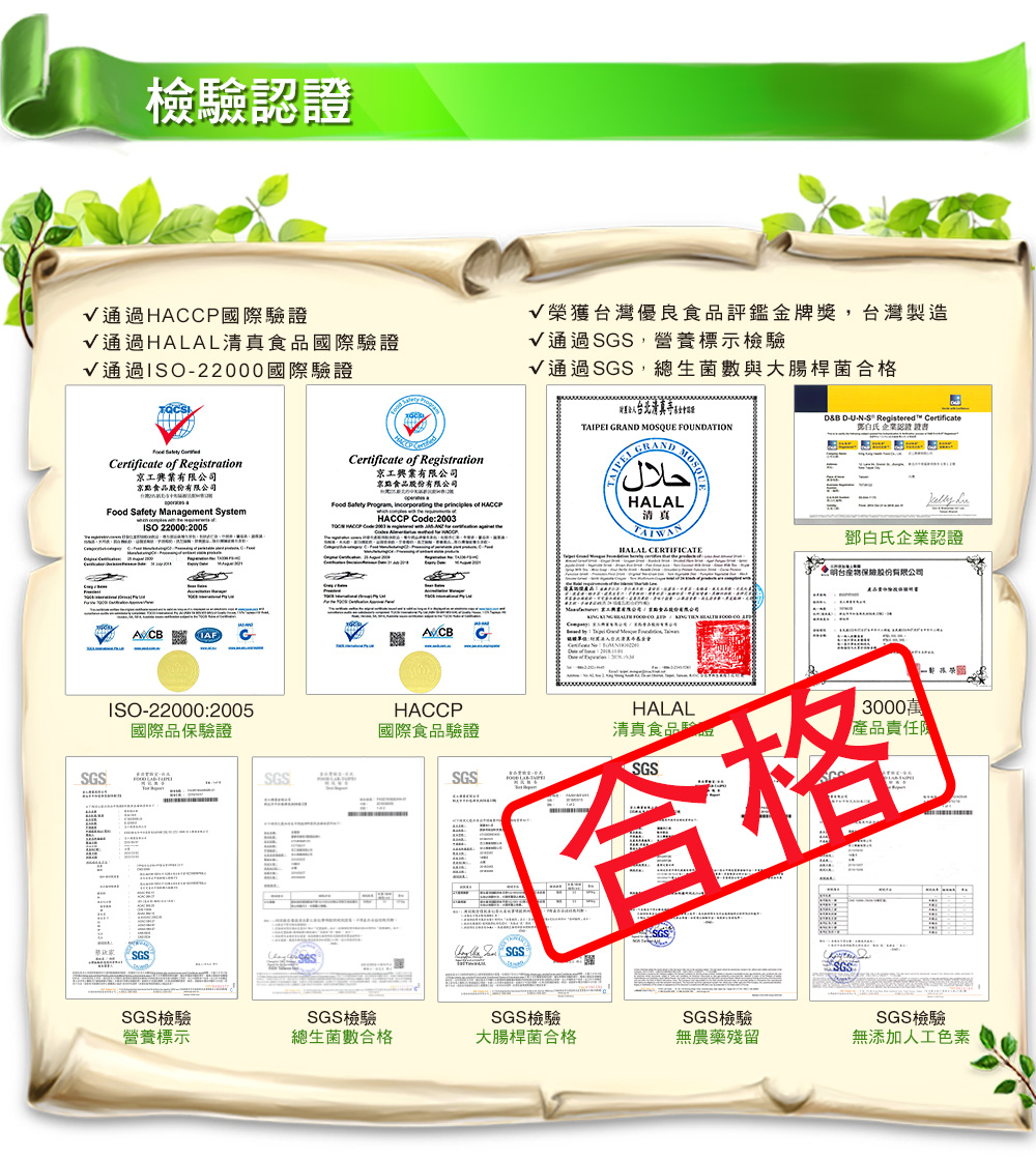 - 獨立包裝:積層內袋,隔絕細菌濕氣可常溫保存