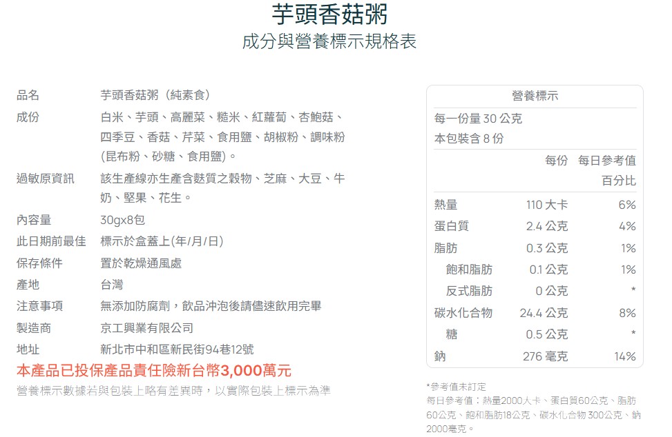 【京工】芋頭香菇粥 30 g*8包