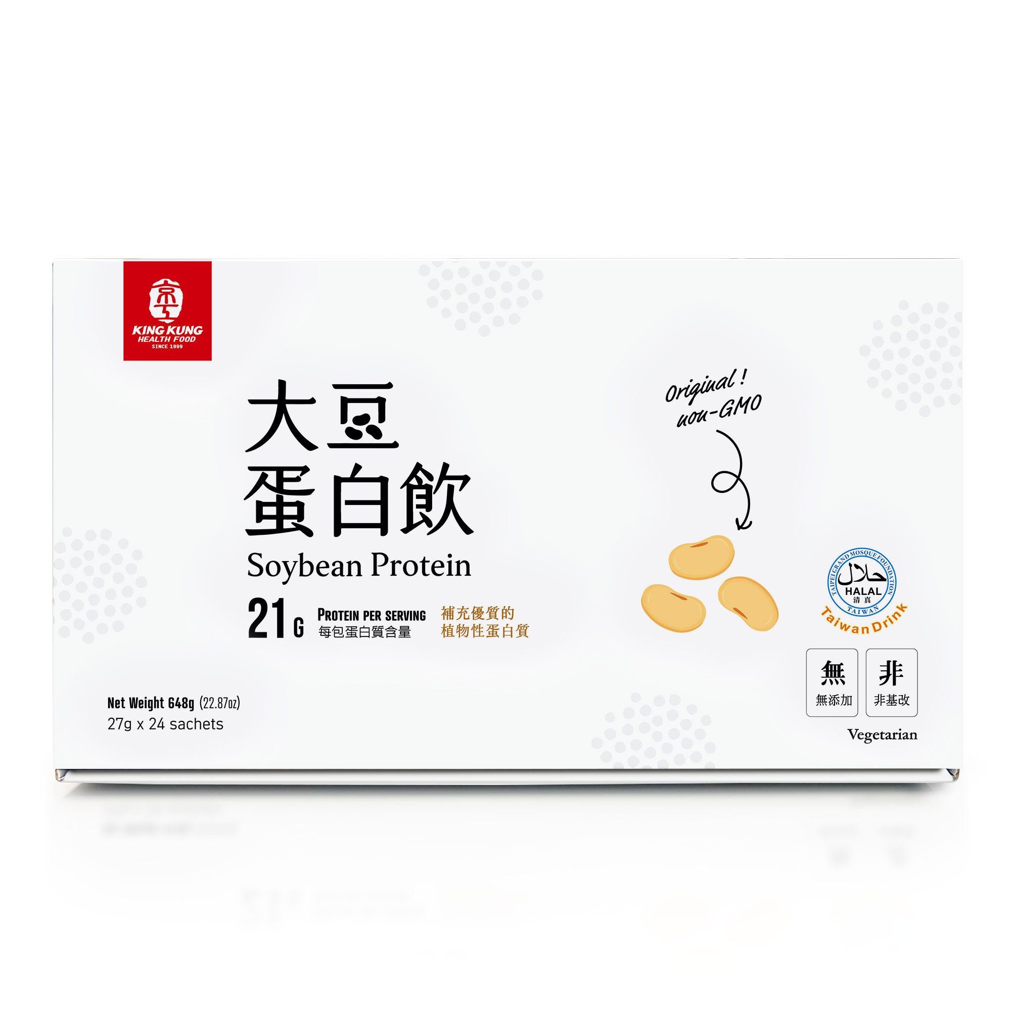 純素食,豆漿風味,含 21g 蛋白質,適合運動健身、年長者,青少年補充身體需要的蛋白質,溫水沖泡即可飲用。